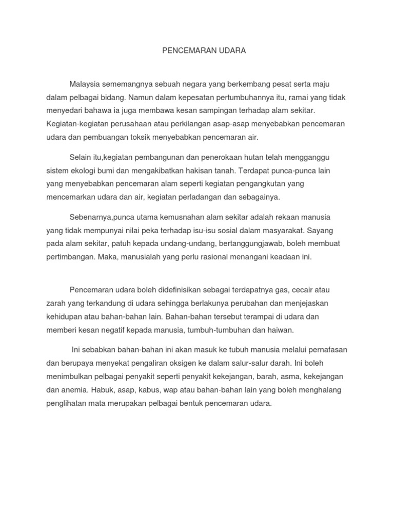 Contoh Karangan Kesan Pencemaran Udara Tugasan Geo Ting 3 Pdf